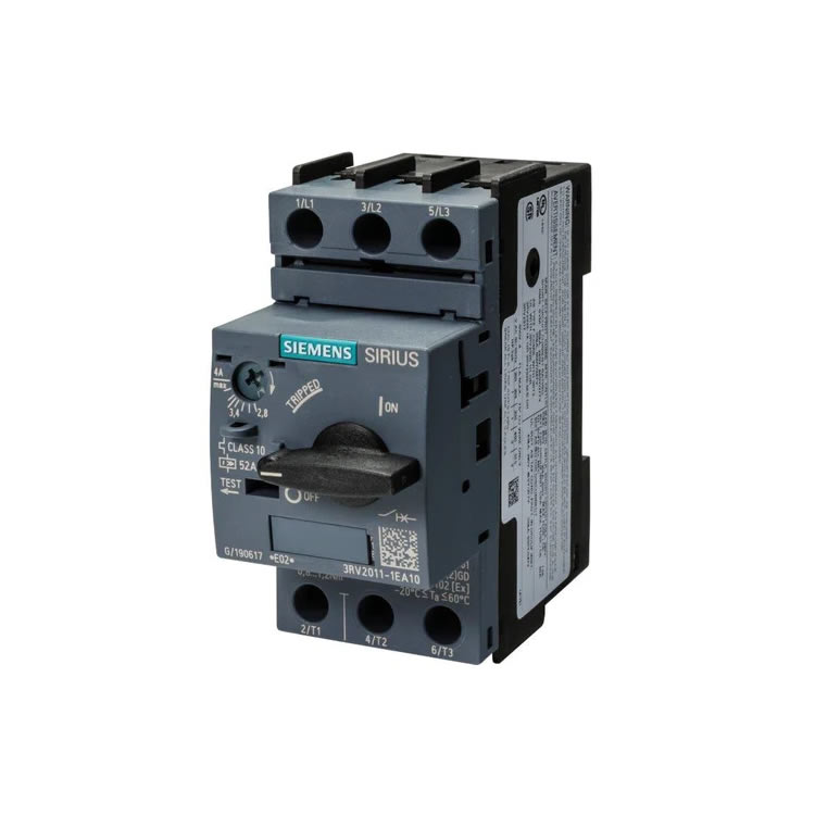西门子Sirius 3RV2011-1EA10是一款断路器/电机保护器,带有用于设置电机 FLA 的开/关旋转拨盘。它具有内置加热器元件,可提供过载保护,并具有磁性跳闸元件以保护电机。